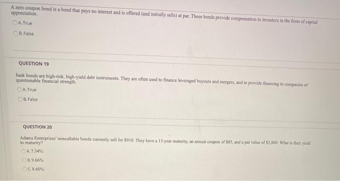 xplaind.com › 421525Gain or Loss on Early Retirement of Bonds - XPLAIND.com Oct 31, 2020 · Hence, the carrying amount is $96,000. As the cash paid to redeem the bonds ($98,000) exceeds the carrying amount ($96,000) by $2,000, the company must bear a loss of $2,000 on retirement. It recognizes the loss using the following journal entry: quizlet.com › 80520267 › bonds-flash-cardsBonds Flashcards - Quizlet Which of the following are true about Zero coupon bonds (more than one may be true): A. A zero coupon bond pays interest each period B. The market value of a zero coupon bond is just the discounted value of the final par value payment. C. Zero coupon bonds are issued at par value. D. Zero coupon bonds are issued at below par value