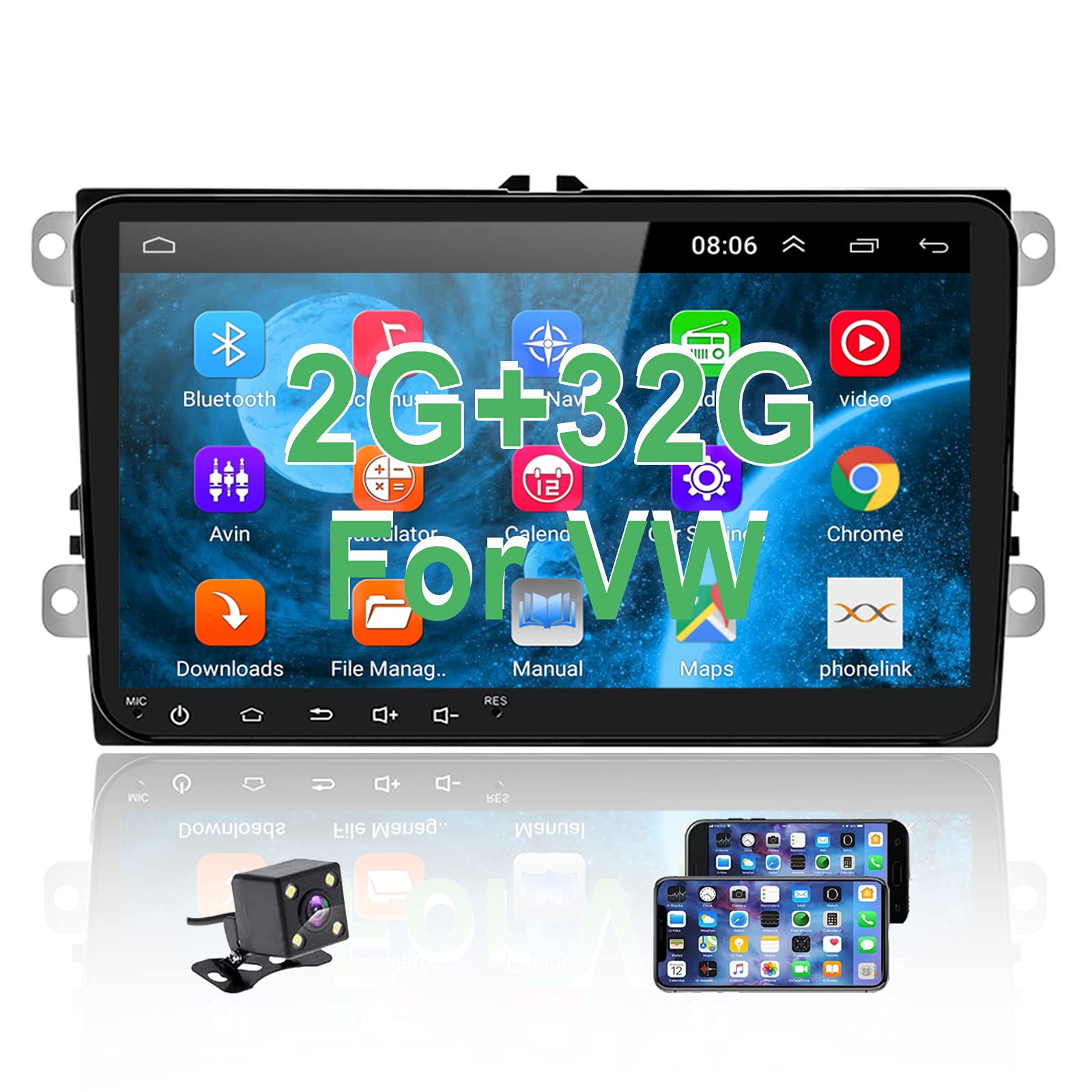 Double Din Android Car Navigation Stereo with Bluetooth for Volkswagen Passat Golf Jetta Polo Tiguan Touran SEAT Skoda, 9”Headunit Support GPS WiFi FM ...