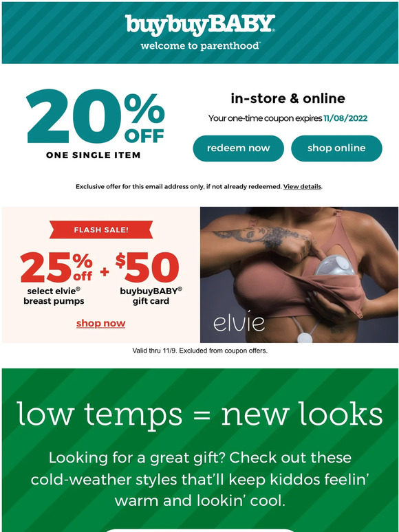 buybuy BABY Coupons | 20% Off In November 2022 | Forbes Check out all products currently on clearance like strollers, clothing, high chairs and more for up to 50% off at buybuy BABY. Get Deal 50% OFF Limited Time: Up to 20% off select car...